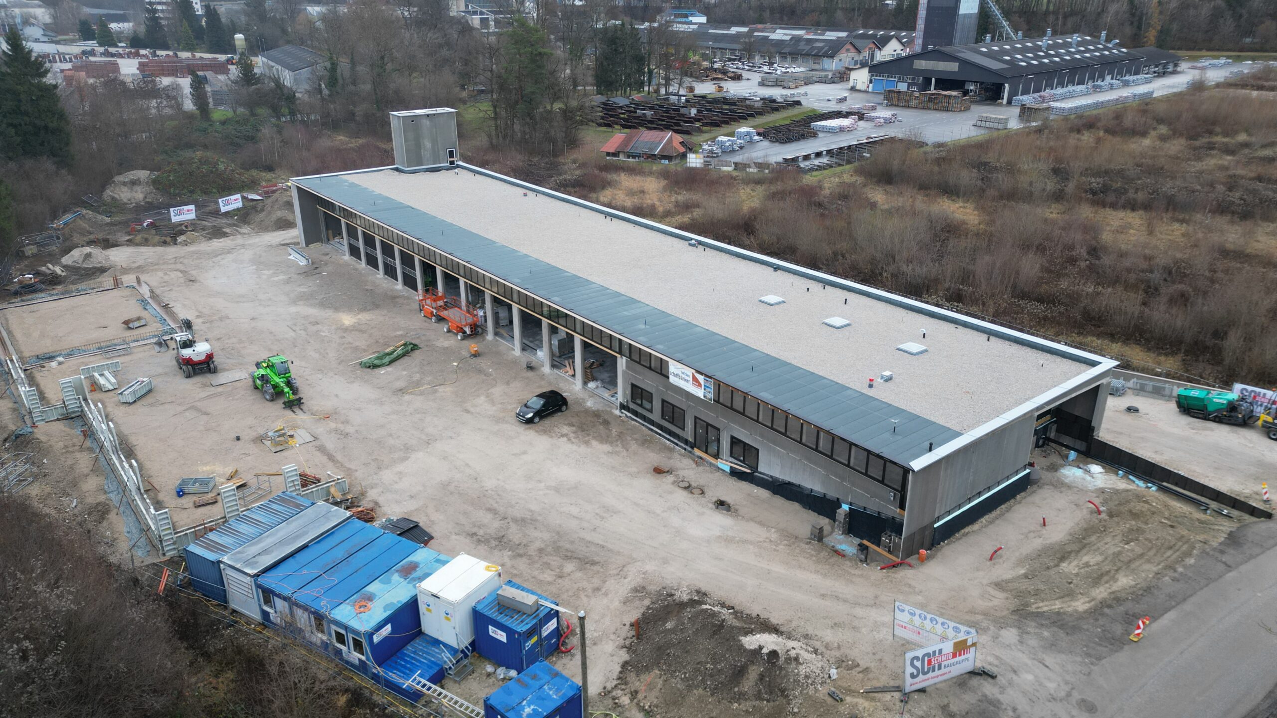 Ein weiterer sichtbarer Schritt: Die Montage der Toranlagen hat begonnen. Zusätzlich wurden durch die Zimmerer die sogenannten “Kraxen” errichtet – also die Unterkonstruktion für die spätere Eternit-Fassade.