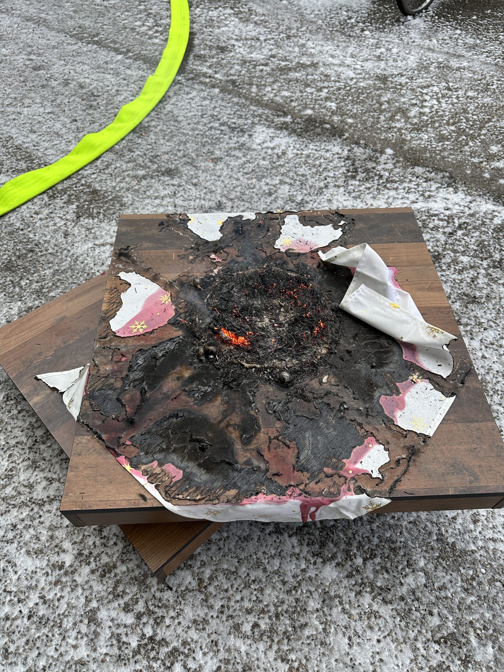 Nach der gewaltsamen Türöffnung wurde durch den Atemschutztrupp ein brennender Adventkranz abgelöscht und ins Freie verbracht, nach Belüftungsmaßnahmen konnte die Brandstätte der Polizei übergeben werden.