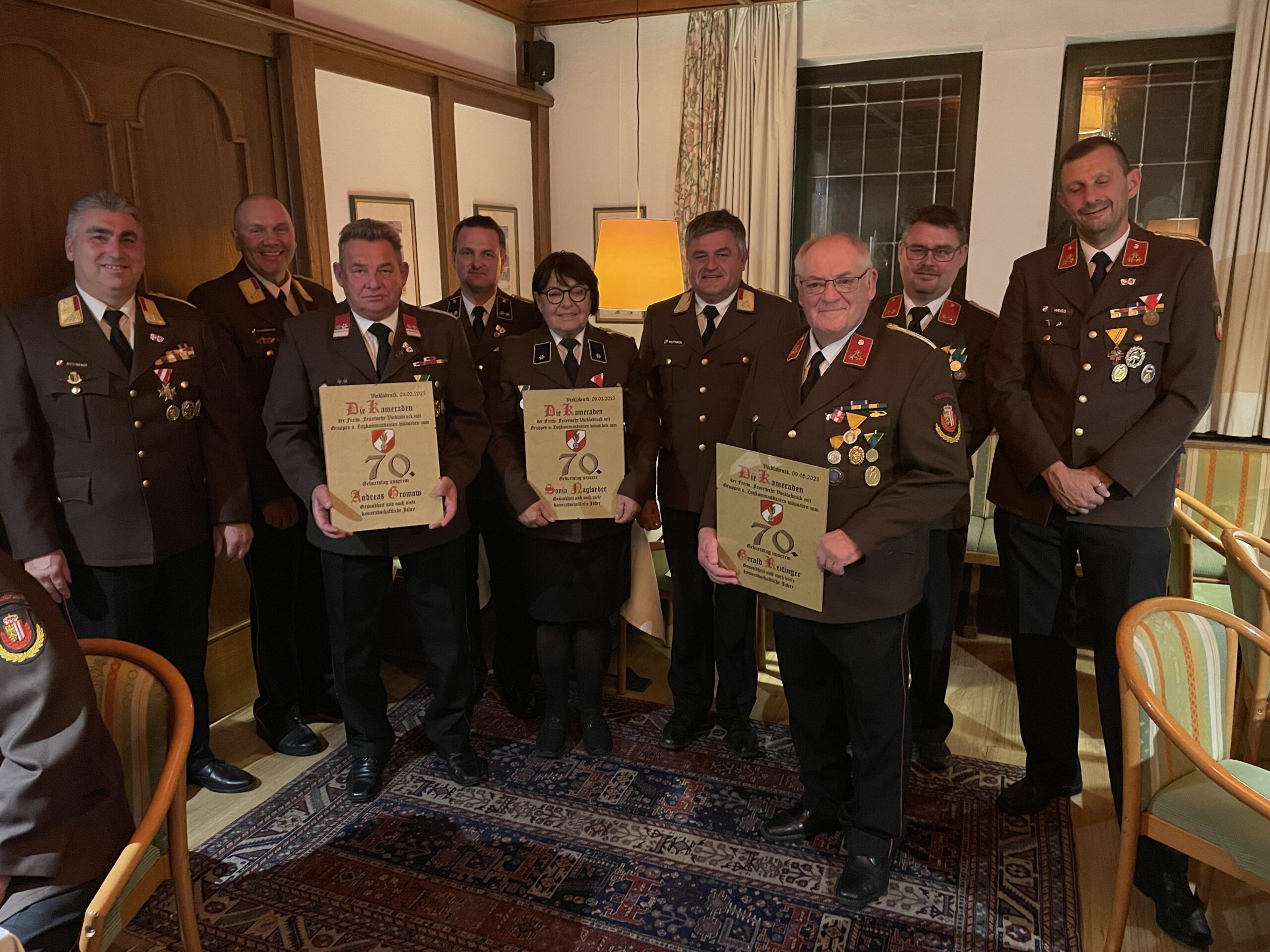 An diesem Abend erhielten zahlreiche Kameradinnen und Kameraden Auszeichnungen auf Landes. und Bezirksebene für ihr jahrelanges Engagement und besondere Verdienste rund um das Feuerwehrwesen