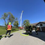 Am folgenden Samstag unterstützen wir mit unserer Teleskopmastbühne und unserem Großtanklöschfahrzeug bei einer Übung um ein landwirtschaftliches Objekt. Aufgabe der TMB war es, die Brandbekämpfung über das Dach mittels Werfer sicherzustellen. Die TMB wurde vom GTLF mit Wasser versorgt. Das GTLF diente vor Ort auch wieder aus Wasserpuffer, der von einer Relaisleitung und von einem Pendelverkehr gespeist wurde. Dank an die FF Ackersberg für die Einladung.