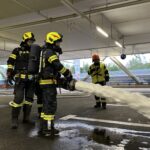 Die Feuerwehr Vöcklabruck und die Betriebsfeuerwehr Swisspearl führten am Montag eine größere Brandeinsatzübung im Parkhaus des Einkaufszentrums VARENA durch. Übungsannahme war ein Brand eines PKW’s mit mehreren vermissten Personen. Beide Atemschutztrupps Vöcklabruck haben sofort mit der Menschenrettung begonnen und anschließend die Brandbekämpfung durchgeführt. Die neuen Atemschutzträger konnten bei dieser Übung schon erste Erfahrungen machen, sowie wichtige Kenntnisse lernen. Des Weiteren wurde die Brandbekämpfung mittels Schaumangriff über die Teleskopmastbühne durchgeführt, welche sehr gut funktionierte.