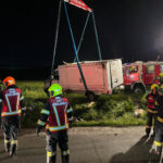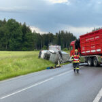 Näheres: „Am 25. Mai 2024 gegen 15:30 Uhr lenkte eine 35-Jährige aus dem Bezirk Vöcklabruck einen Lkw entlang der B1 aus Mösenthal kommend Richtung Bierbaum. Bei Straßenkilometer 255,9 im Gemeindegebiet Vöcklamarkt kam sie rechts in das Bankett, wodurch sich der Lkw überschlug und auf der gegenüberliegenden Fahrbahnseite, auf der linken Fahrzeugseite zum Liegen kam. Zeitgleich lenkte ein 21-Jähriger aus dem Bezirk Vöcklabruck seinen Pkw aus Bierbaum kommend Richtung Mösenthal. Er musste mit seinem Pkw nach rechts in die angrenzende Wiese ausweichen, um eine Frontalkollision zu vermeiden. Beim Eintreffen der Beamten an der Unfallstelle konnte starker Gasgeruch wahrgenommen werden, weshalb alle Beteiligten, sowie unbeteiligte Schaulustige umgehend aus dem Gefahrenbereich evakuiert wurden. Durch mehrere Polizeistreifen wurde ein Sperrkreis errichtet und die Feuerwehr sowie das Rotes Kreuz verständigt bzw. angefordert. Spezialkräfte der Feuerwehr für Gefahrenstoffe führten erste Messungen betreffend Explosionsgefahr im Sperrkreis durch. Aufgrund der festgestellten akuten Explosionsgefahr mussten die Messungen, während das Gas weiter austrat, wiederkehrend durchgeführt werden bis mit den Bergungsarbeiten begonnen werden konnte. Im Lkw befanden sich vier Flaschen Propangas, welche laut Auskunft des Gefahrenstoffkundigen Organs insgesamt 71.000 Liter Gas beinhalteten. Nach der Freigabe der Unfallstelle bzw. der Freigabe durch das Gefahrenstoffkundige Organ der Feuerwehr wurde mit den Bergungsarbeiten begonnen und in weiterer Folge die Fahrbahn nach etwa sieben Stunden wieder freigegeben. Bei der Lenkerin des Lkw verlief ein Alkomattest positiv, weshalb ihr der Führerschein vorläufig abgenommen wurde – sie wird angezeigt. Verletzt wurde bei dem Unfall glücklicherweise niemand.“ Presseaussendung LPD Oö