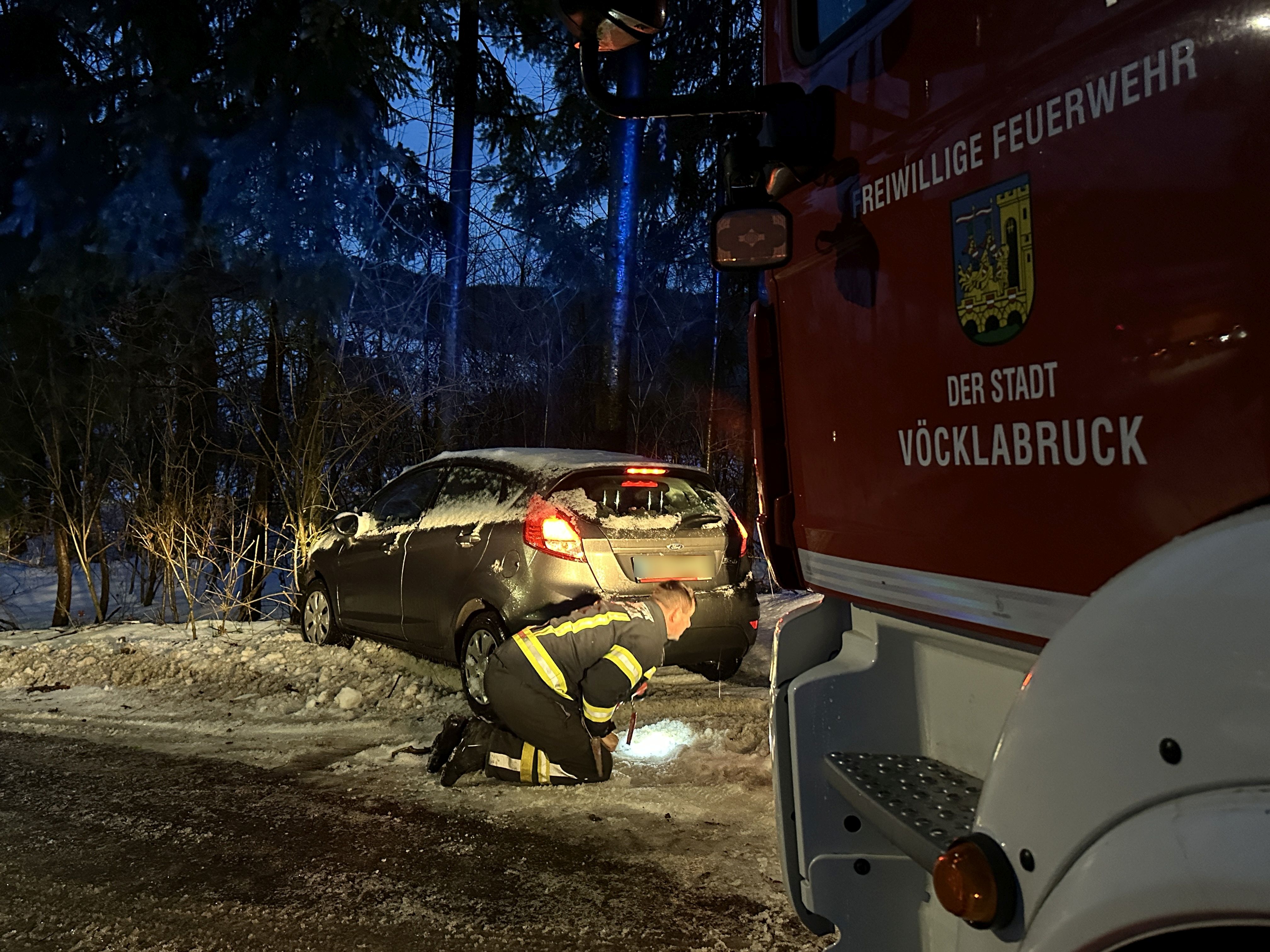 Die Feuerwehr Vöcklabruck wurde von Montag auf Dienstag mehrmals zu Fahrzeugbergungen aufgrund des anhaltenden Eisregens zur Hilfe gerufen.