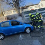Nur wenige Minuten später folgte die Alarmierung zu einem PKW-Brand, etwa 300 Meter entfernt. Da der Einsatzort nur einige Straßen entfernt war, machten sich die Kameraden nach Absprache mit der Landeswarnzentrale mit dem TANK 2 sofort auf den Weg zur zweiten Einsatzadresse. Beim Eintreffen an der Einsatzstelle stand der Motorraum des Fahrzeuges bereits im Vollbrand und drohte auf das gesamte Fahrzeug überzugreifen. Mittels HD-Rohr konnte der brennende Motorraum rasch gelöscht werden. Der PKW wurde mit der Wärmebildkamera kontrolliert und etwaige Glutnester wurden abgelöscht.
