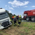 Die Krangruppe der FF Vöcklabruck wurde heute Nachmittag nach Zipf zu einer Fahrzeugbergung alarmiert. Vorort stürzte ein LKW aus bisher unbekannten Gründen um. Aufgabe der Krangruppe war es in erster Linie, den LKW wieder aufzurichten. Am LKW wurden Anschlagmittel angebracht, um ihn im Anschluss mit der Seilwinde des Kranfahrzeuges aufstellen zu können. Im Anschluss wurde der LKW mit der Seilwinde wieder auf die Straße gezogen. Danke an alle eingesetzten Kräfte für die gute Zusammenarbeit. Der Einsatz konnte nach rund 2 Stunden beendet werden.