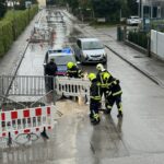 Am Samstag wurde die FF Vöcklabruck zu einigen Einsätzen aufgrund der starken Regenfälle alarmiert. Anfang machte eine Dachsicherung. In der Hinterstadt lösten sich Teile eines Daches und stützten auf einen stehenden PKW. Mithilfe der TMB konnten rasch die Dachteile entfernt werden. Weiter ging es mit einigen umgestürzten Bäumen und überfluteten Kellern. In den Abendstunden unterstützen wir den Bauhof beim Auspumpen eines Schachtes.